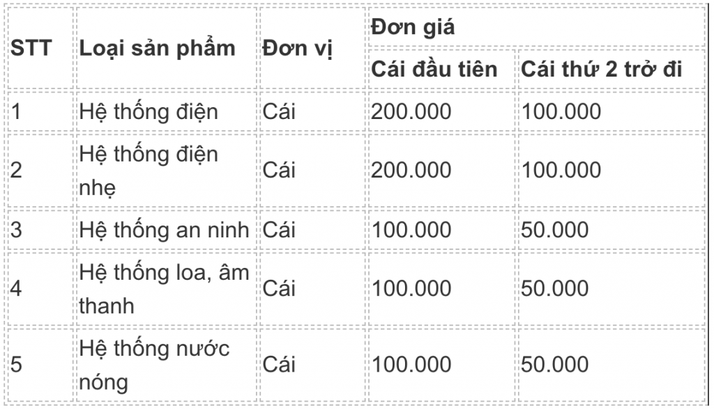 – Đơn giá cái thứ 2 trở đi chỉ được áp dụng khi cùng đơn hàng với cái đầu tiên.