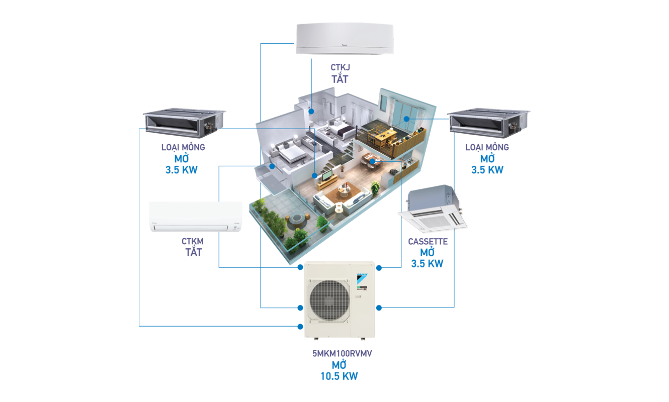 Dàn lạnh ốp trần thổi 4 phía – dành cho không gian rộng – phòng khách – phòng làm việc